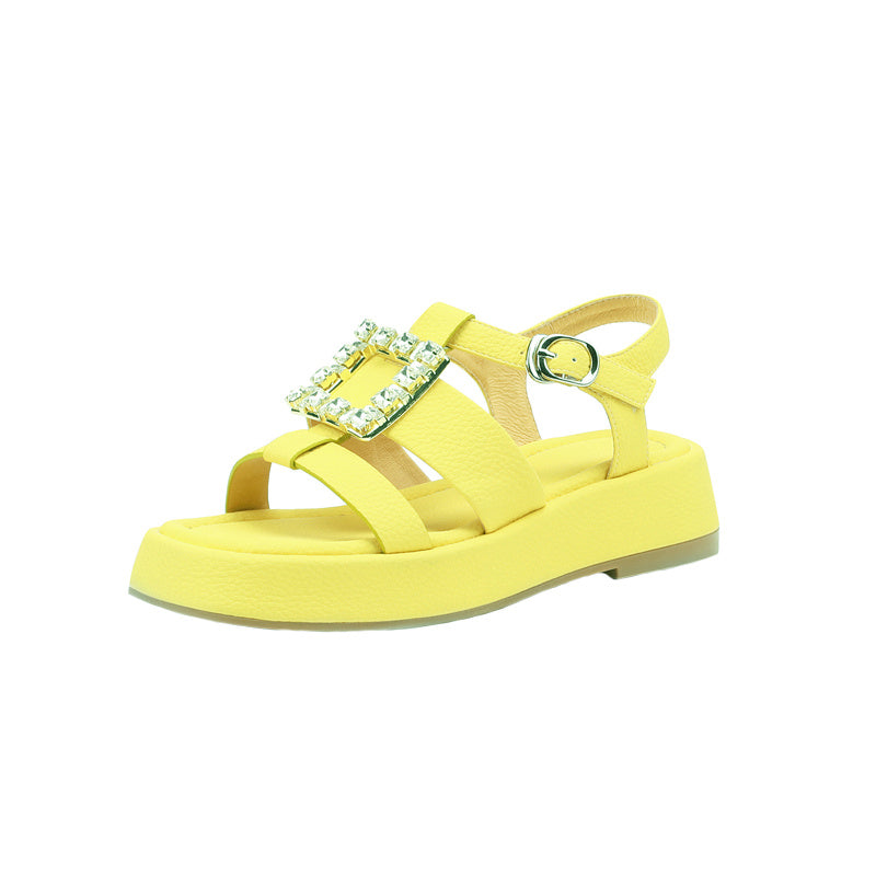 Women's Yellow Rhinestone Square Buckle Platform Roman Shoes
