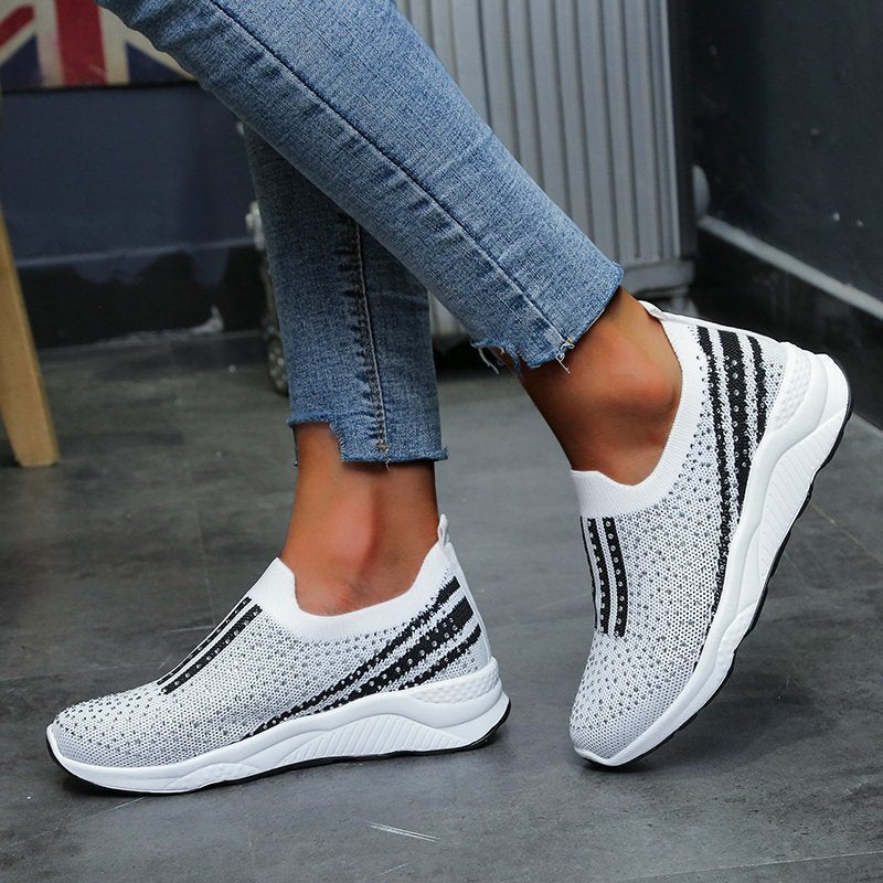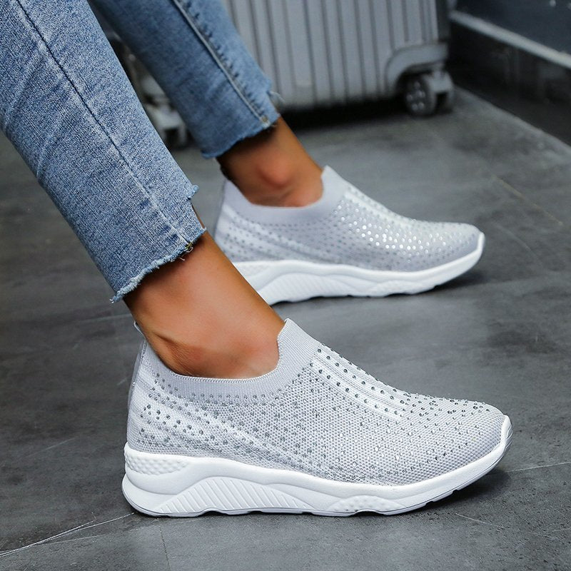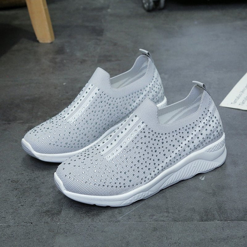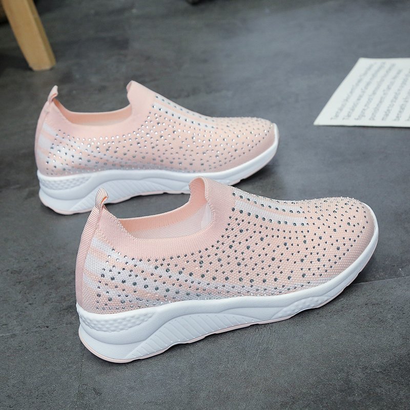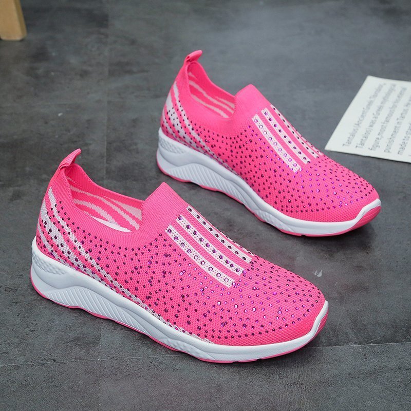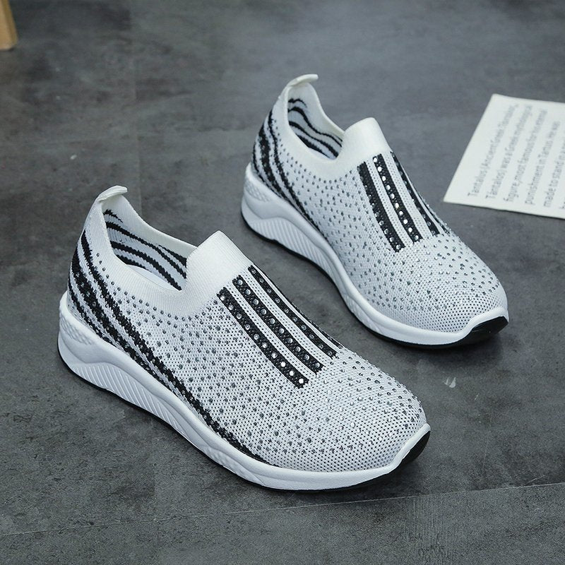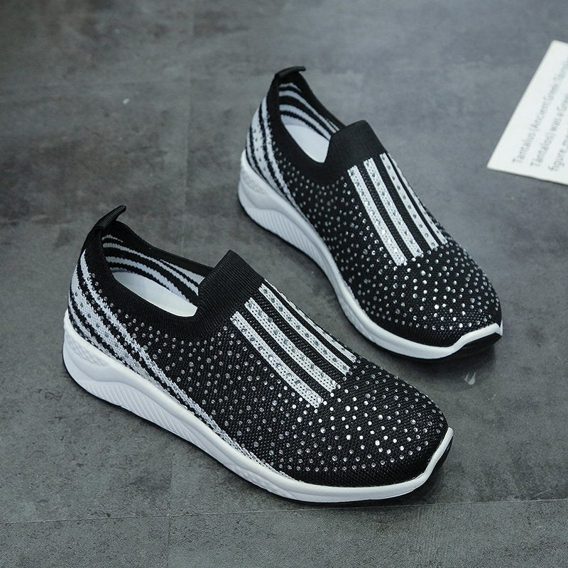 Rhinestone Elastic Foot Knit Casual Shoes Women