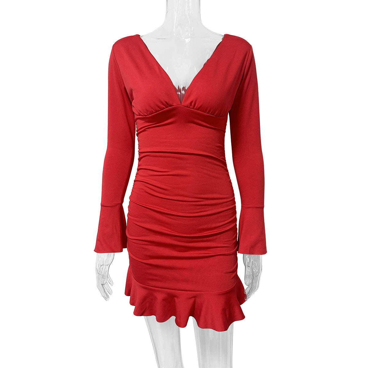 Deep V Long Sleeve Dress Women