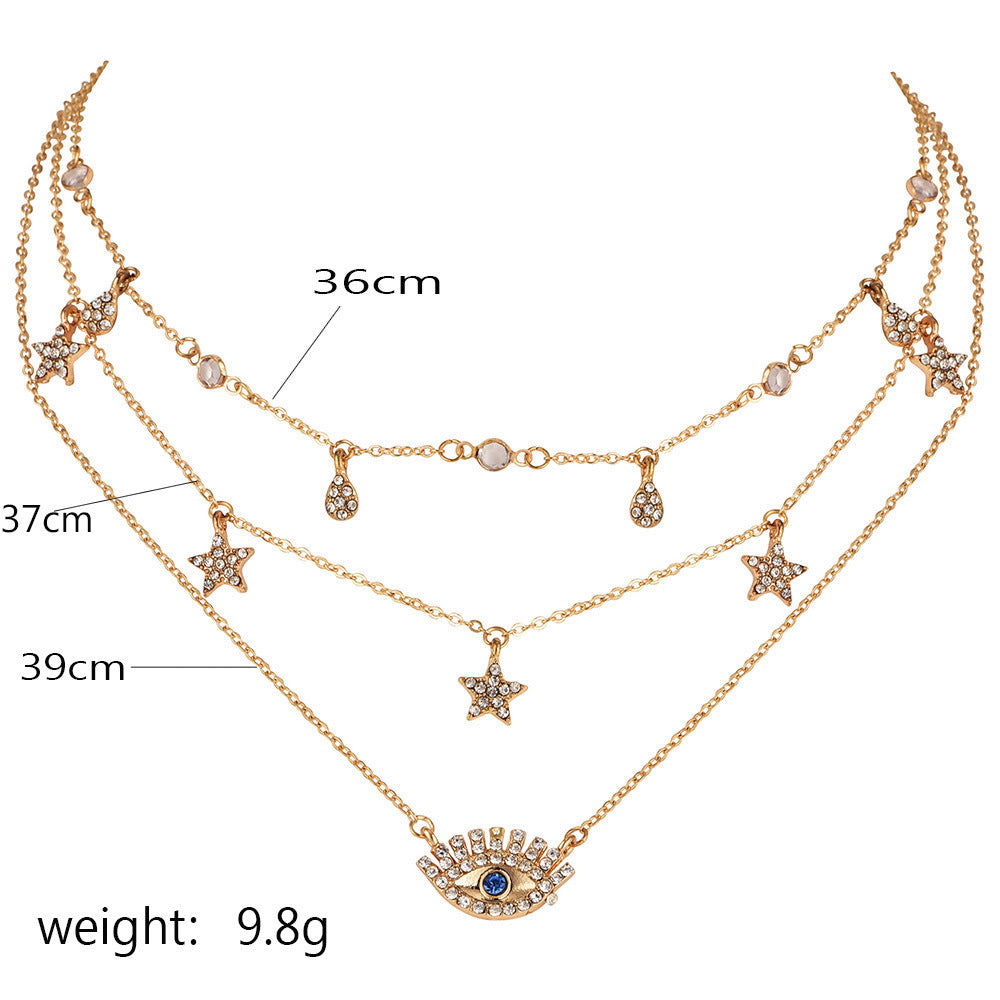 Bls-miracle Multilayer Necklace for Women Long Chain Turkish Eye Pendant Necklaces Trendy Crystal Star Water droplets Necklaces
