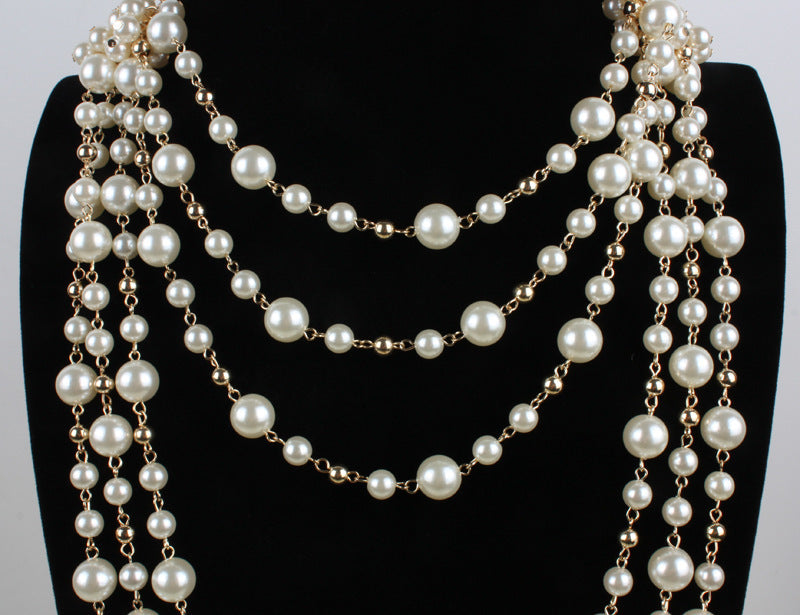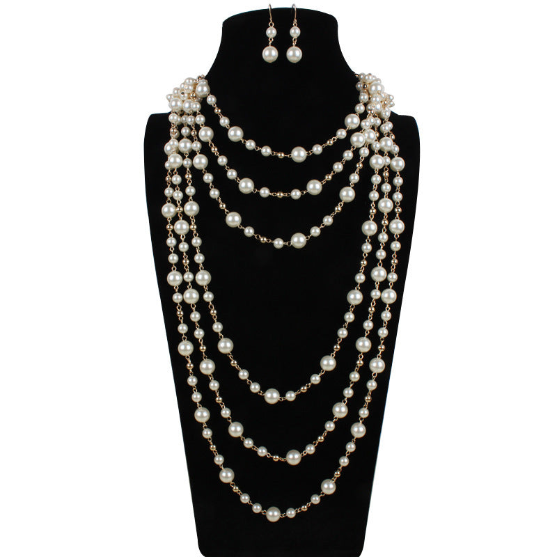 European And American Necklaces Multilayer Pearl Necklace Sweater Chain